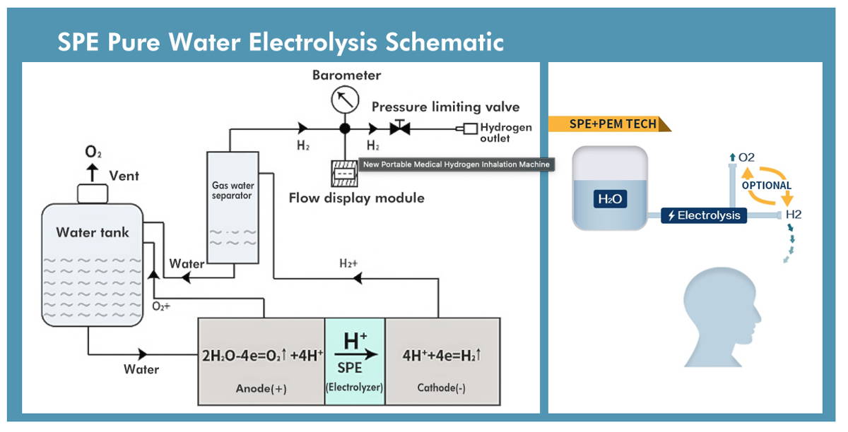 Hydrogen inhalers utilizes a process called electrolysis to generate molecular hydrogen (H2) gas, which is then inhaled for its potential health benefits.